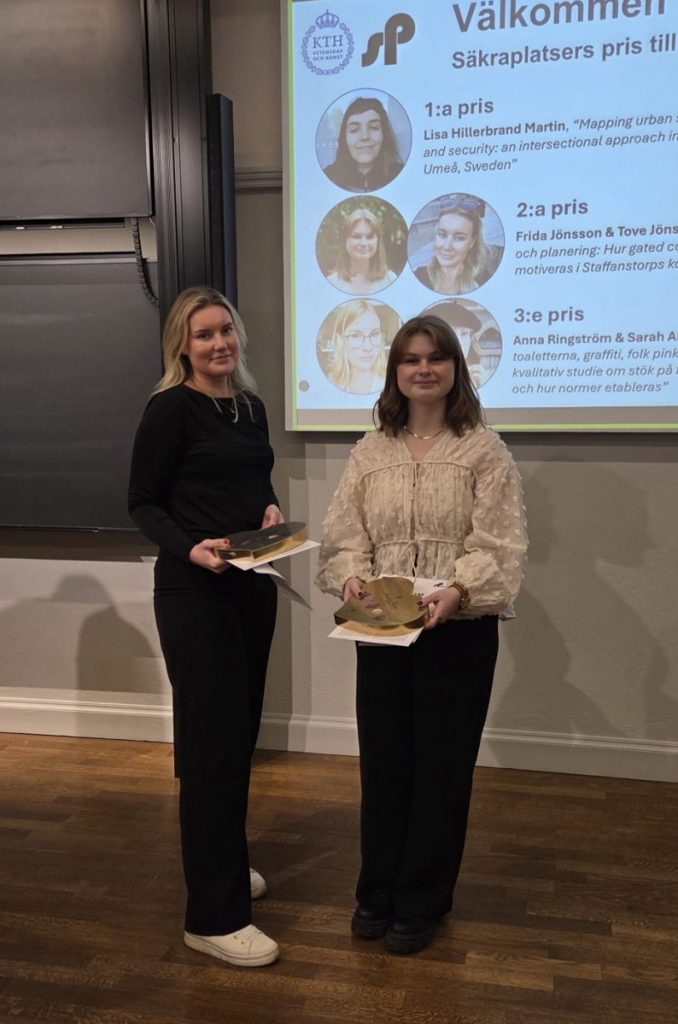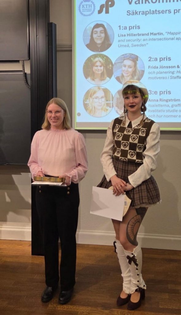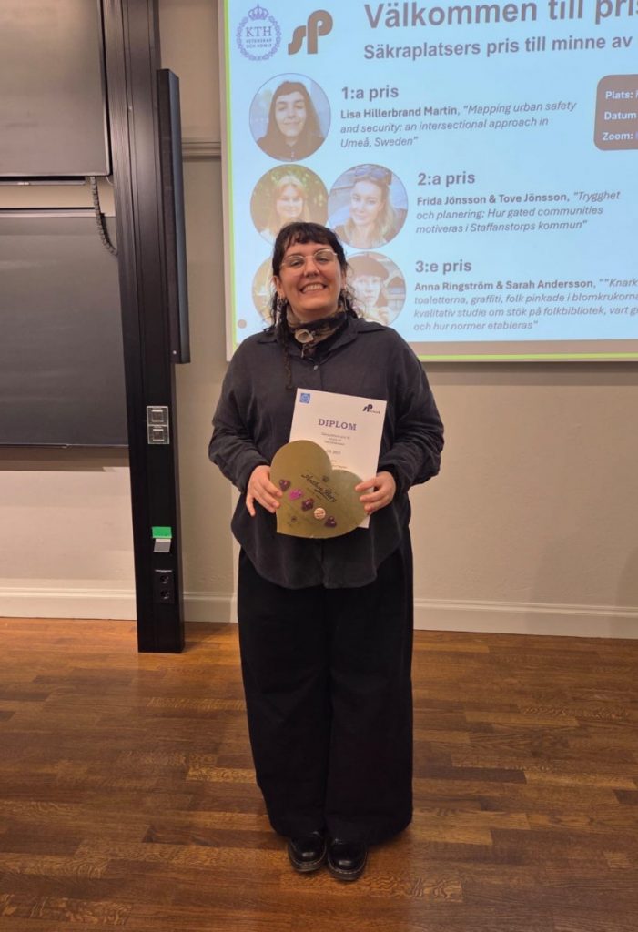 Juryns motivering: ”Genom ett analytiskt starkt angreppssätt visar studien, med hjälp av flera metoder och ett intersektionellt perspektiv, hur stadsdesign, sociala faktorer och kontext samverkar i formandet av trygghetsupplevelser, särskilt för utsatta grupper. Studien har hög samhällsrelevans genom att den synliggör hur planering och utformning kan förstärka eller motverka otrygghet i vardagsmiljöer. Författaren kopplar även resultaten tydligt till Agenda 2030, mål 11, om inkluderande och trygga städer.”