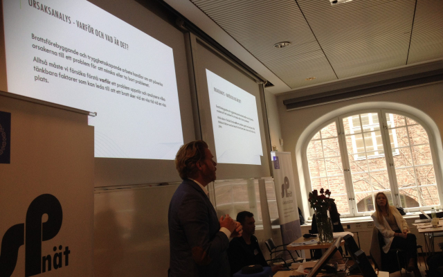 Mer än 100 personer registrerades till den första nationella Workshopen. Rummet var packat med en bra blandning av praktiker och akademiker. Alla är överens om att brottsförebyggande arbete kräver kunskap om var problemen finns, hur vi kan identifiera och kartlägga problem, definiera lösningar, gripa in och sedan utvärdera om vi lyckats eller inte. Det är en lång process som kräver kunskap och engagemang av olika aktörer, organisationer och samhället. Den 15:e maj fokuserade vi på ”Kartläggning & analys” och i höst fortsätter vi med en ny workshop fokuserad på ”Genomförande av åtgärder mot ett problem”, följt av ”Metoder för utvärdering av åtgärdernas resultat”. Här kan du läsa sammanfattande minnesanteckningar från Workshopen.